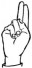 На ћирилици написано НИНА ДУЈИН састоји се из 9 слова [?]. Исписано ћириличном једноручном азбуком за глувонеме: